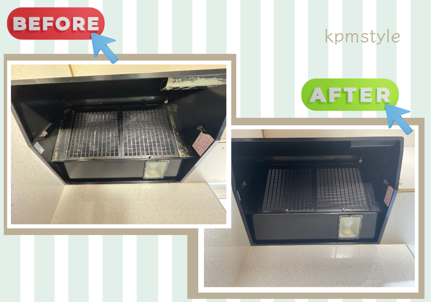 こちらはレンジフードの部品交換と修繕の様子ですが、これまたすっかりキレイになりました